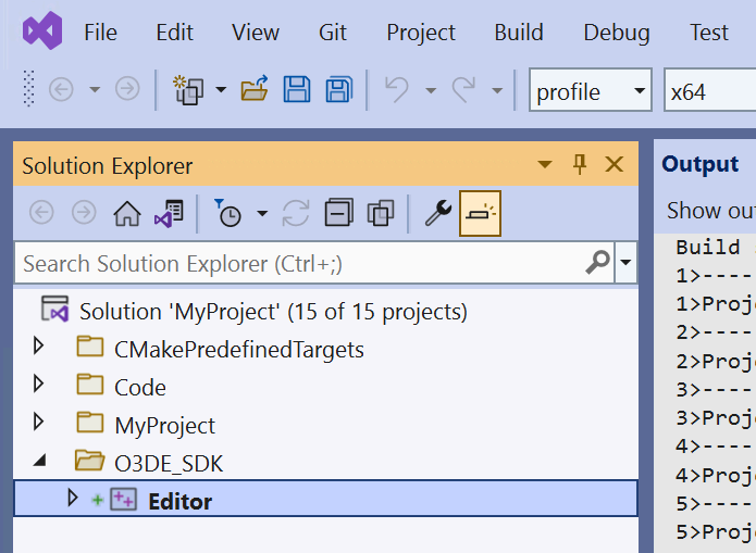 或者,通过构建并运行解决方案文件夹中的 Editor 项目,从 Visual Studio O3DE_SDK解决方案中。