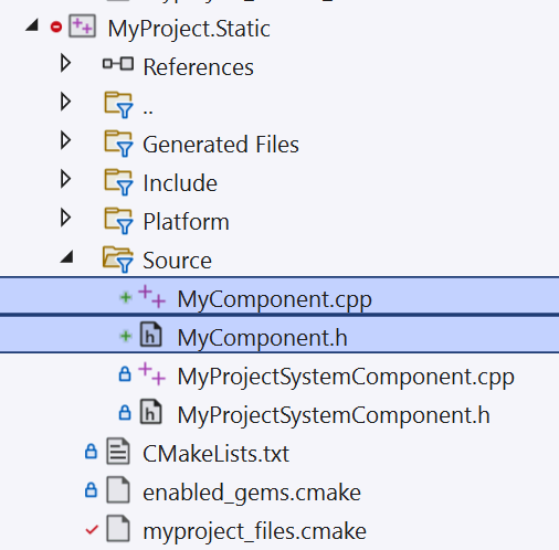 MyProject 是链接 MyProject.Static 并向 Editor 和游戏启动器提供组件信息的动态库。换句话说,MyProject.Static 定义组件,而 MyProject 为您的项目注册这些组件。